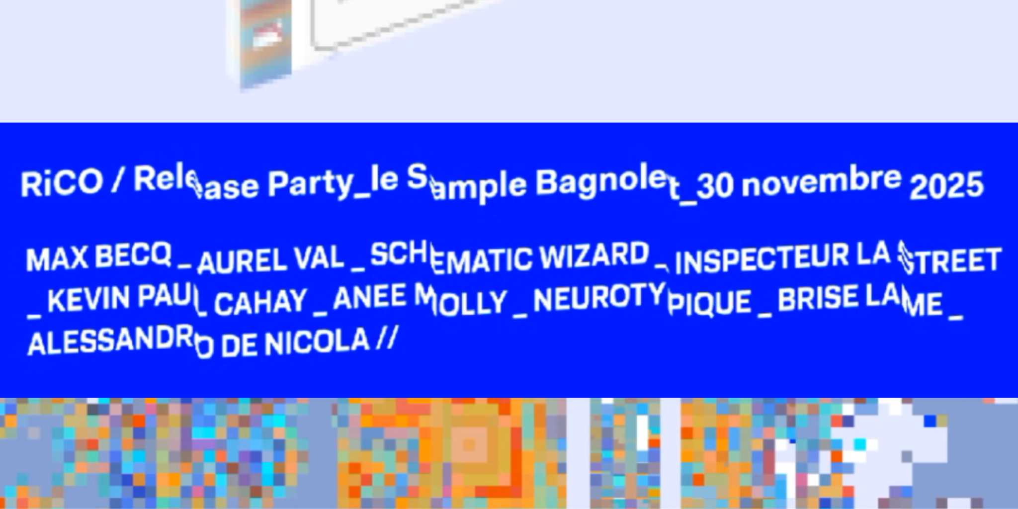 Le collectif RiCO, dédié aux explorations autour du synthétiseur modulaire, investit Le Sample pour une après-midi de performances célébrant à la fois la sortie de sa première compilation et le lancement de son label, RiCORDS. Tout au long de l’événement, les membres du collectif se succéderont sur scène et dans différents espaces du lieu, offrant une mosaïque de concerts, d’installations sonores et visuelles, révélant toute la richesse et la diversité de leurs univers musicaux.