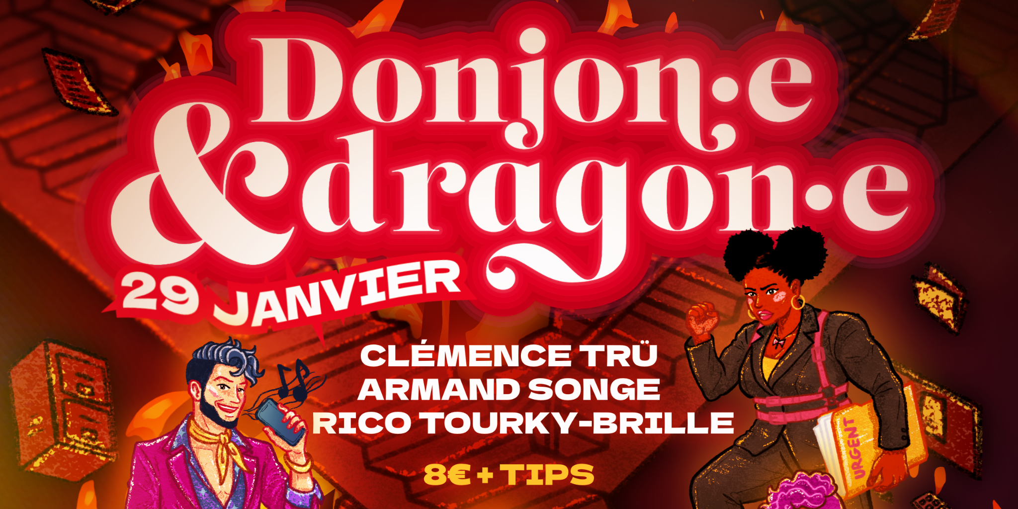 La Donjon·e & Dragon·e est un dragshow interactif et narratif. Vous incarnerez des personnages dans une histoire contée par La Dragonne et Anacab dont les péripéties seront des performances drag. Au programme : chant, danse, burlesque et jeté de dé à la manière d’un jeu de rôle papier !