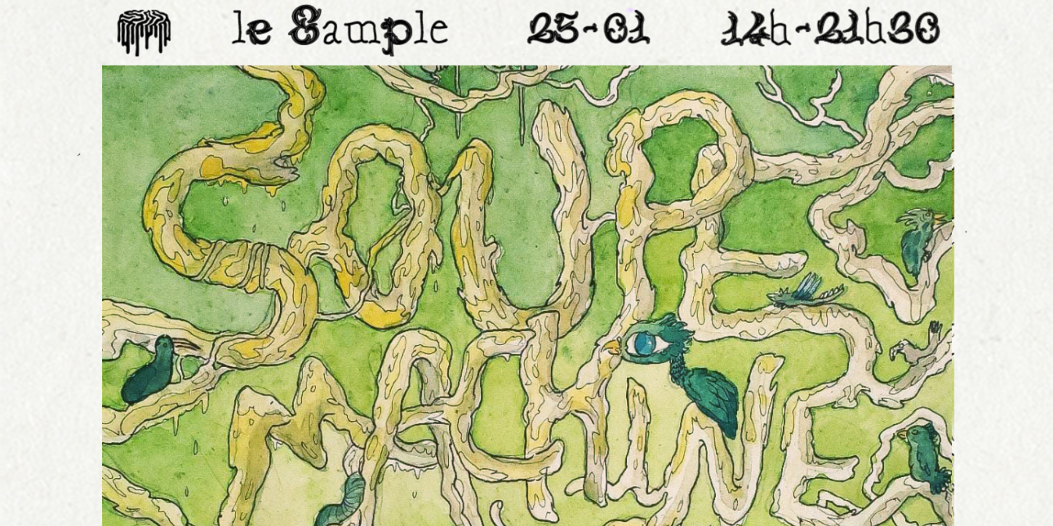 Pour une première dominicale au Sample, Soupe Machine s’associe au duo Monte-Charge le temps d’une après-midi de DJ sets, lives et performances audiovisuelles. Une lente traversée en cinq actes entre artistes nantai.ses et parisien.nes qui façonnent des paysages sonores invitant aussi bien au voyage intérieur qu’à l’aventure collective.